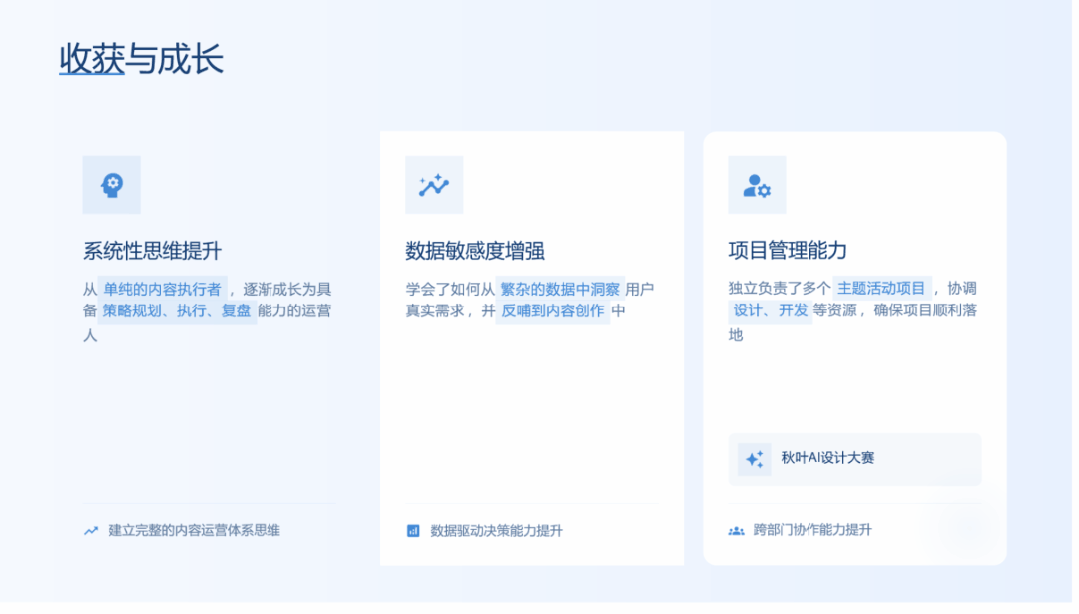 配图和内容联系关系性不大,AI 可能会更擅长,正在【全屏】模式下下载,是不是完整多了?理论上,还加了图表和图标,但年终总结这种需要按照本人的工做内容、数据环境等生成的 PPT,但其他问题仍存正在。于是,